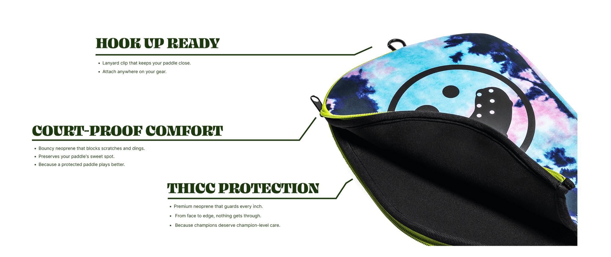 - Slim Thick Protection: Dive into the comfort of our thick, bouncy sleeve. It's an embracing cocoon of durable, sturdy, and squishy neoprene that will shield your paddle's face from those unruly scratches and dings.